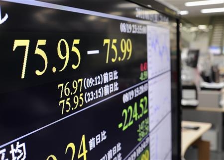 市場関係者が注目するのは26日に行われる米連邦準備制度理事会(FRB)のバーナンキ議長の講演。米の景気後退懸念が強まる中、追加金融緩和の姿勢が示されれば、もう一段の円高・ドル安が進みかねない。野村証券の木内登英氏は「言及があれば週内に73円台に突入する可能性もある」と指摘する。【田畑悦郎、谷川貴史】